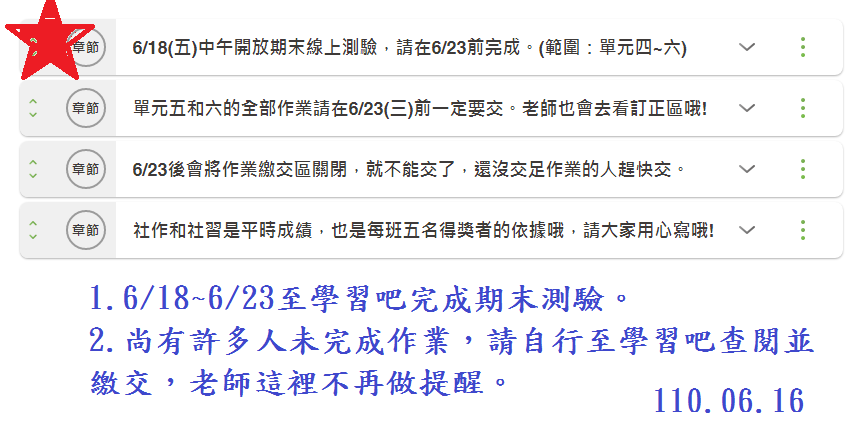 3、完成各科老師課程及作業。(眼睛要適當休息)